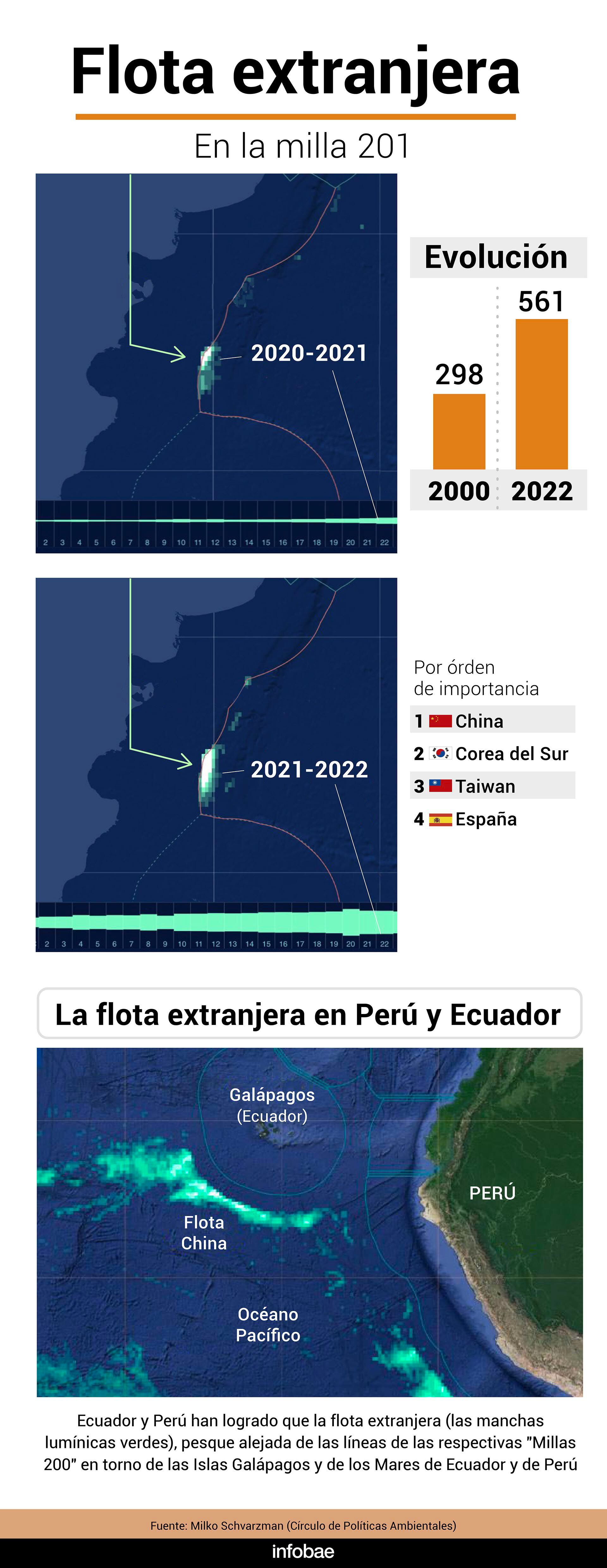 Las capturas en la Milla 201, explicó Ivanovic, se estiman sobre la base del número de barcos, su posición y el Programa Sensoramiento Remoto del Inidep y análisis de imágenes satelitales nocturnas de luz, aplicando la captura por unidad de esfuerzo pesquero de la flota potera nacional en zonas contiguas en el mismo momento”.