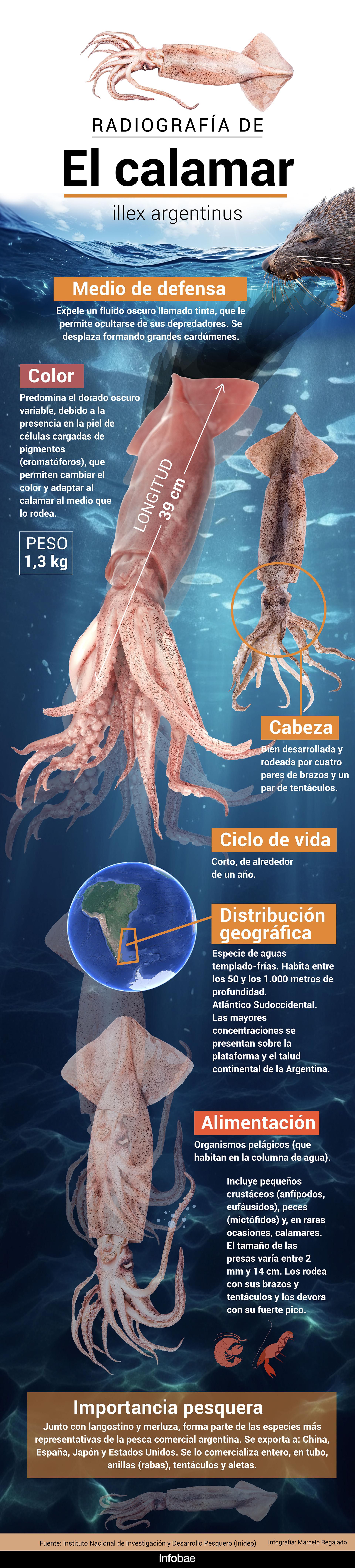 Una «radiografía» de la especie, realizada por el Inidep“Dado su papel como depredador y presa, el calamar sustenta toda la cadena trófica y realiza funciones oceánicas de vital importancia; como transportar carbono y nutrientes entre los ecosistemas marinos o actuar como bombas biológicas transeúntes”, subraya a su vez un estudio de la ONG Greenpeace.